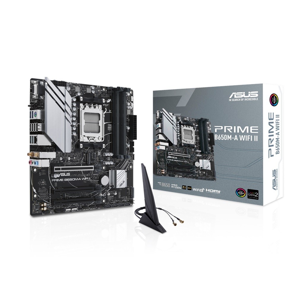 ASUS Prime series motherboards are expertly engineered to unleash the full potential of AMD Ryzen 7000-series processors. Boasting a robust power design, comprehensive cooling solutions and intelligent tuning options, PRIME B650M-A WIFI II provides users and PC DIY builders with a range of performance optimizations via intuitive software and firmware features.