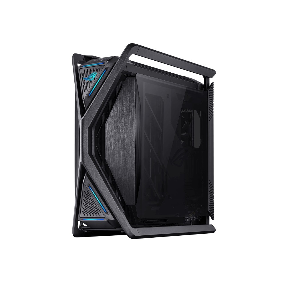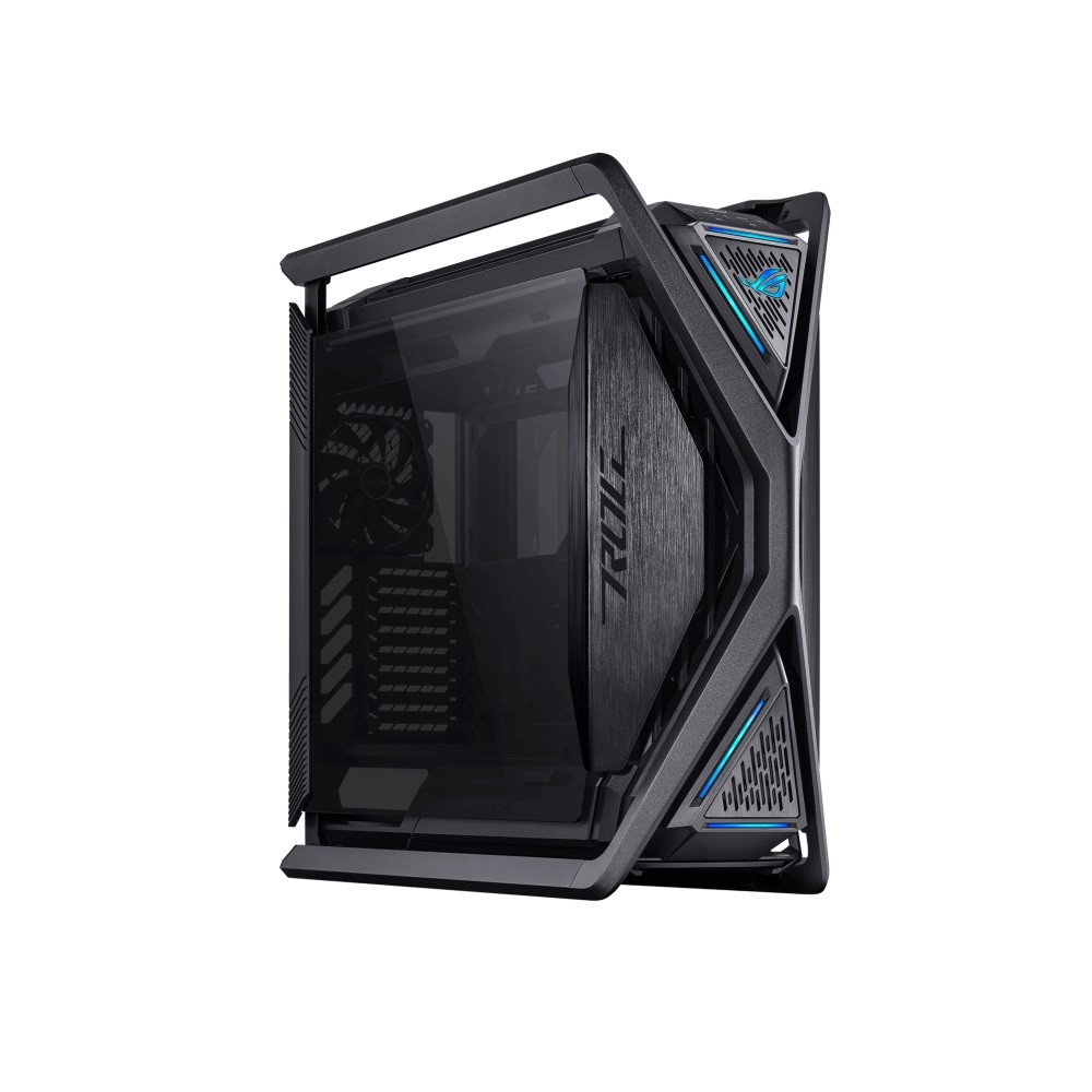 ROG Hyperion GR701 E-ATX computer case, 420 mm dual radiator support, four 140 mm fans, metal GPU holder, component storage, ARGB fan hub, 60W fast charging.