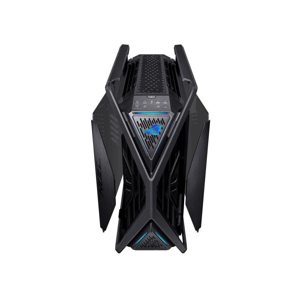 The ROG Hyperion frame is constructed of rugged aluminium alloys forged into a distinctive X that extends from the center of the chassis all the way out to its perimeter. It’s rigid structure doubles up as carry handles capable of bearing up to 80 kg of hardware.